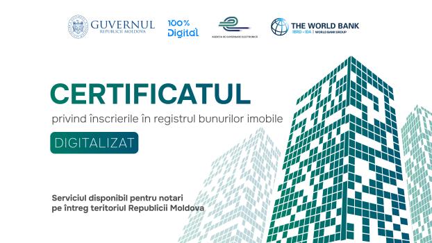Reamintim, că lansarea serviciului face parte din eforturile autorităților pentru asigurarea executării prevederilor art. 30I din Legea cadastrului bunurilor imobile nr. 1543/1998, realizarea obiectivului Guvern 100% digital. Serviciul a fost dezvoltat în cadrul Proiectului „Modernizarea serviciilor guvernamentale”, implementat de AGE, cu sprijinul Grupului Banca Mondială. Lista serviciilor de înregistrare a drepturilor în registrul bunurilor imobile și tarifele la acestea sunt aprobate prin Hotărârea Guvernului nr.966/2020 și publicată pe Portalul Serviciilor Publice - servicii.gov.md.
