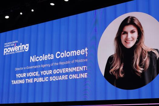 Nicoleta Colomeeț, directoarea AGE, a urcat pe scenă în cadrul prezentării „Vocea ta. Guvernul tău”, unde a oferit o retrospectivă a celor 15 ani de transformare digitală în Republica Moldova, subliniind impactul platformelor digitale în construirea unui stat transparent și eficient. A nominalizat reușitele digitale recente, evidențiind evoluția aplicației EVO și lansarea noii platforme eDemocrație. În discursul său, a menționat modul în care digitalizarea redefinește participarea civică, apropiind cetățenii de procesul decizional guvernamental.