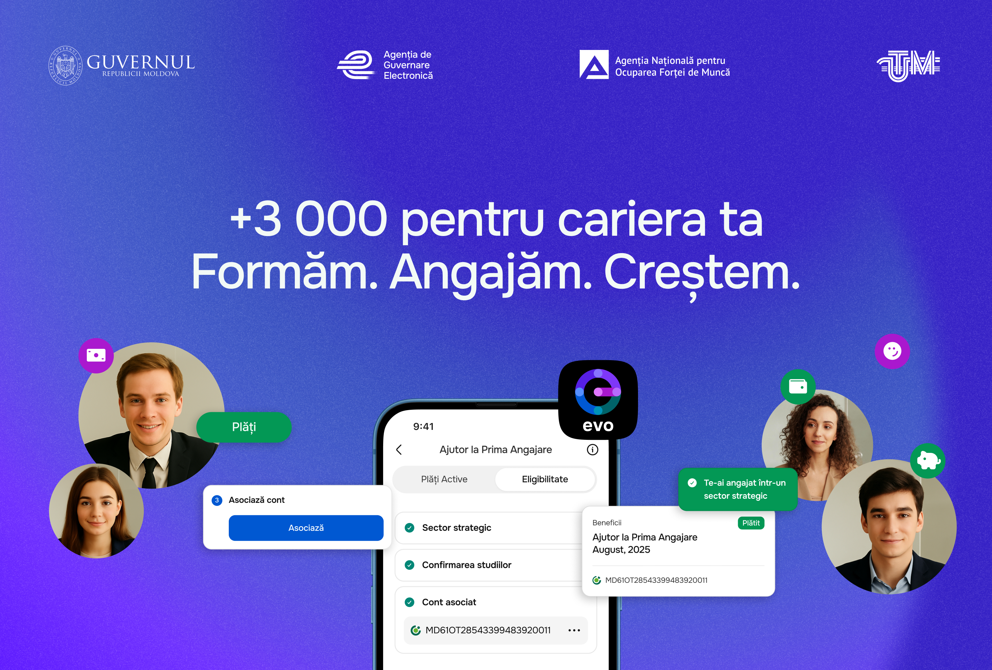 Programul, aprobat recent de Guvern, sub egida Președintei Republicii Moldova, Maia Sandu, este complet digital și se implementează exclusiv prin aplicația guvernamentală EVO. Acesta urmărește crearea unor oportunități reale pentru tineri, sprijinindu-i să-și construiască o carieră și să contribuie la dezvoltarea economiei țării.