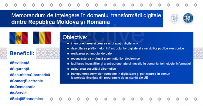 Подписание Меморандума-соглашения в области цифровой трансформации между Республикой Молдова и Румынией активизирует двустороннее сотрудничество в данной сфере, обеспечит перенос европейских норм и применение общих стандартов, которые откроют возможности для совместного участия в проектах по развитию и цифровой трансформации,  финансируемых за счет программ финансовой помощи Европейского союза. Это предполагает множество преимуществ, которые ощутит каждый гражданин, а также структуры публичного и частного секторов, академическая среда и неправительственный сектор, ведь данные преимущества касаются продвижения цифровой партиципативной демократии, развития экономических отношений, активизации электронной торговли, развития и освоения электронных госуслуг и пр.