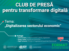 Clubul de presă pentru transformare digitală se va reuni într-o nouă ședință, pentru a discuta despre Digitalizarea sectorului economic. Evenimentul este organizat la inițiativa Agenției de Guvernare Electronică, în parteneriat cu Ministerul Economiei.