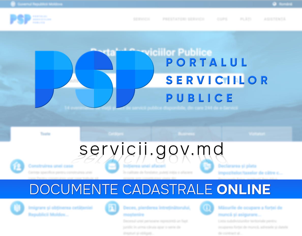 Individuals and legal entities can apply for cadastral documents online on the Public Service Portal (servicii.gov.md). Those who have electronic signatures can request digital cadastral documents in their virtual personal cabinet (mcabinet.gov.md), in the “Real Estate” section, or on the cadastral services website https://eservicii.gov.md/asp/cadastru/cerere, and receive them in “My Documents” section on the governmental citizen and business portal.