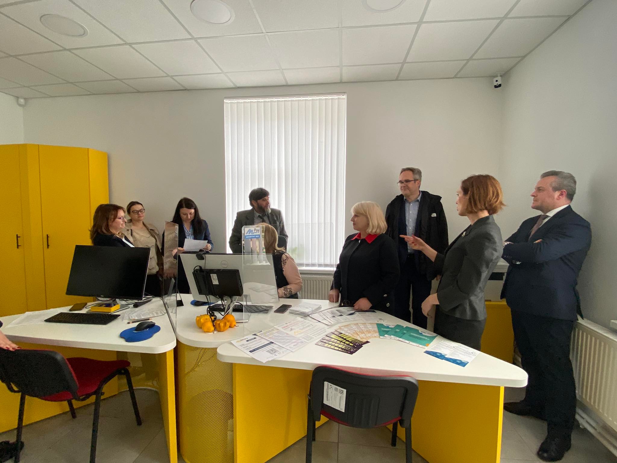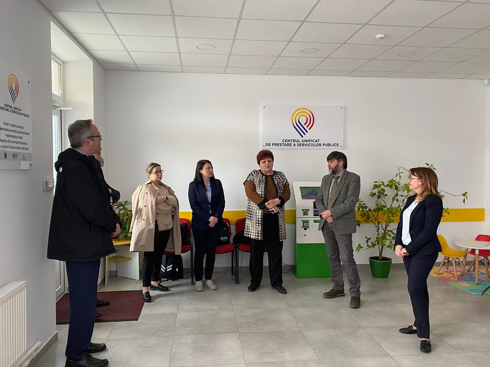 Olga Tumuruc, the director of the e-Governance Agency (EGA), jointly with Koen Davidse, the executive director of the World Bank Group, and representatives of the CUPS project implementation team, Ministry of Finance and the local government, visited today, March 31, 2023, Lozova village in Straseni rayon to evaluate the operations of CUPS Lozova.