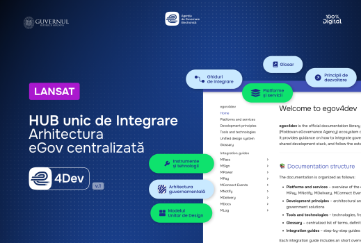Conceput ca și bibliotecă tehnică de referință, eGov4Dev pune la dispoziția dezvoltatorilor ghiduri și exemple de implementare ce facilitează integrarea rapidă, standardizată și compatibilă a soluțiilor digitale din ecosistemul de eGuvernare al Republicii Moldova.