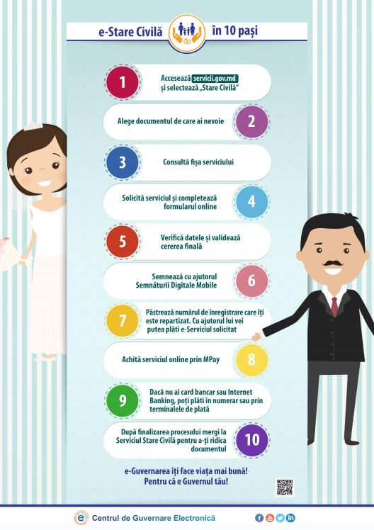 Доступ к E-Услугам Актов Гражданского Состояния может быть получен на правительством портале servicii.gov.md, с использование Мобильной Цифровой Подписи, а услуги могут быть оплачены посредством государственной услуги электронных платежей MPay. Посредством данных инструментов, е-услуги Актов Гражданского Состояния могут быть использованы и лицами, находящимися за пределами страны. Их использование предоставляет полную безопасность для пользователей.